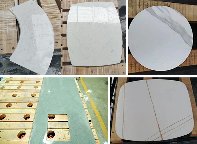 Four axis infrared bridge cutting machine with spindle is widely suitable for processing granite, marble, artificial stone, slab and other types of stone. The machine head can swing at any angle and can cut the plate at any angle and shape.And the stone cutting machine can also cut the large plate with 45°chamfering, opening the basin hole, stove hole, and diagonal cutting.